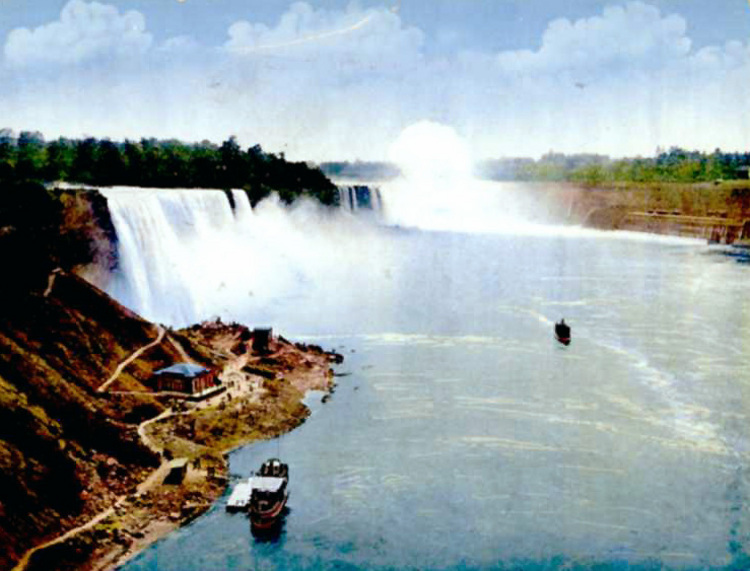 American and Horseshoe Falls and the Maid of the Mist landing dock on the American side