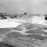 - Niagara River in Winter with the Rainbow Bridge in the background