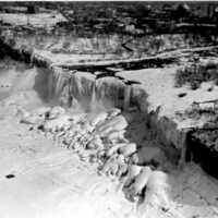- An aerial view of The American Falls frozen over in the Winter of 1934