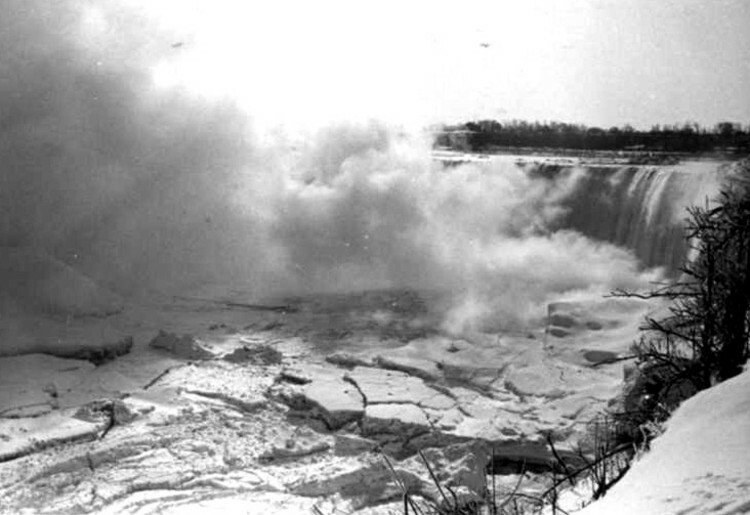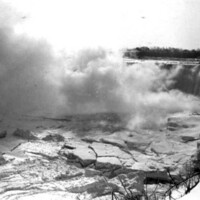 - Thick layers of ice in the Lower Niagara River at the base of the Horseshoe Falls