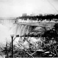 - American and Bridal Falls as seen from Goat Island, Rainbow Bridge in background