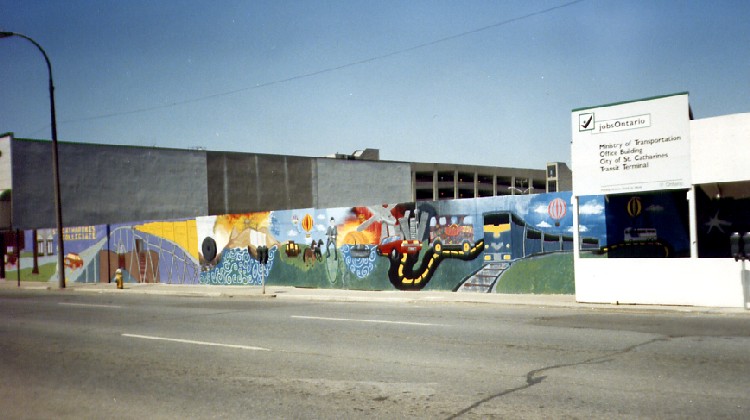 - Fence around construction site on St Paul St. Murals were painted by students of St Catharines Collegiate