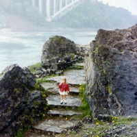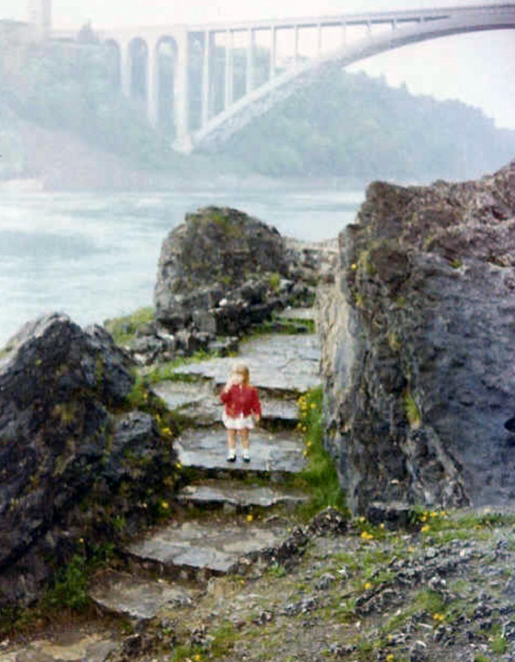 - Small child in the Niagara Gorge, Rainbow Bridge in the background