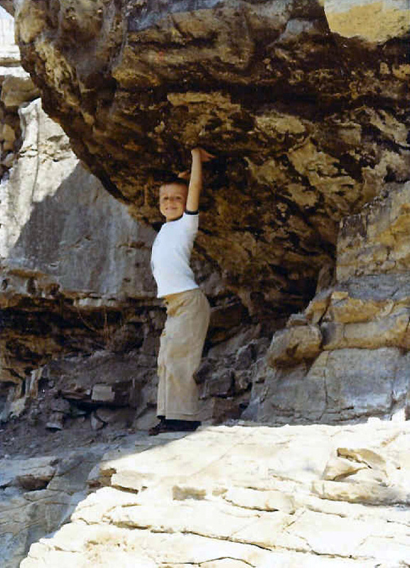 Child playing underneath an overhanging rock formation in the Niagara Gorge