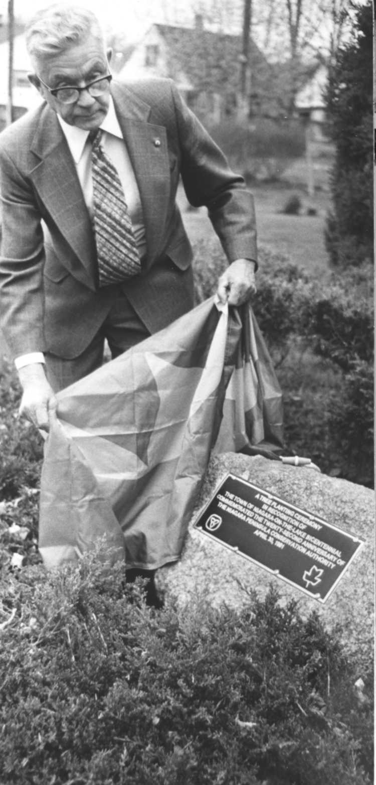 Unveiling a plaque for "A Tree Planting Ceremony... " at Niagara-on-the-Lake