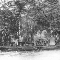 - en-CA Three men on left: unknown; man standing: Mr. Joseph Wells; 2 girls are: Elizabeth & Jemmie Lewis; lady: Mrs. Jabey Lewis; boy on right: Jabey Lewis Jr. ;