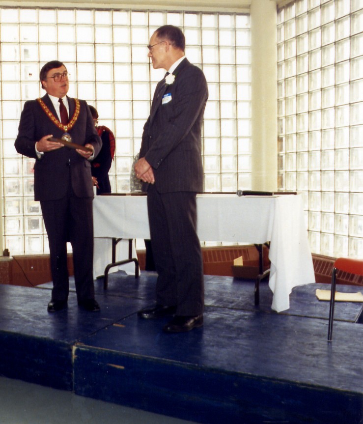 - Mayor Bill Smeaton presenting plaque to Doug Aitchison