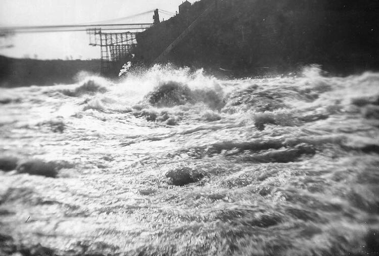 Niagara Whirlpool & Rapids with Railway Suspension Bridge in the Background