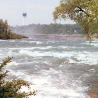 - Upper Niagara River leading to the Brink of the American Falls Minolta Tower in background