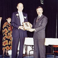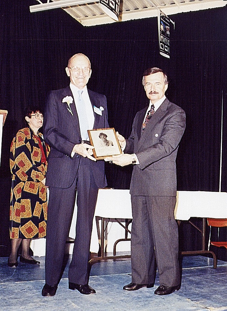 - Mayor Wayne Thomson (right)presenting award to Hans Draeger, Alderman Paisley Janvary in background