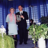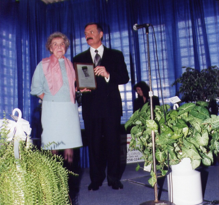 - award being presented by Mayor Wayne Thomson to an unidentified family member