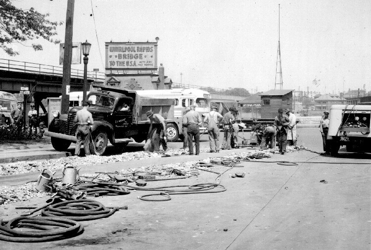 - tram tracks rails canadian national railway street whirlpool lower arch bridge truck t v murray