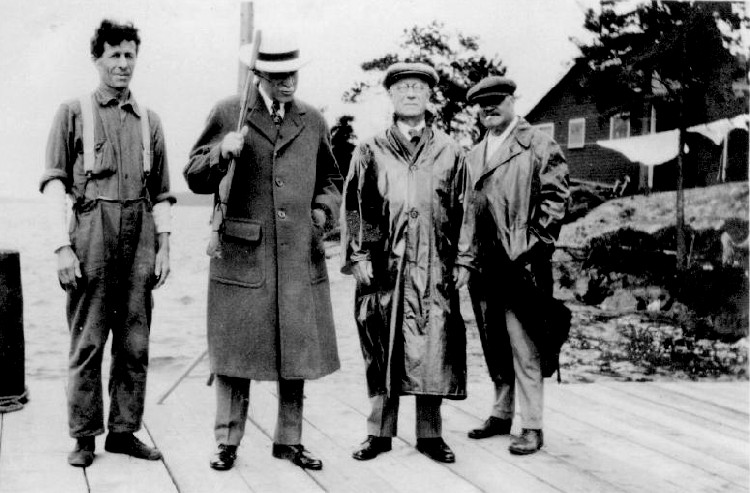 - L-R: Indian guide named Paul, William Lowry Doran, Doctor Wilson and Charles Doran