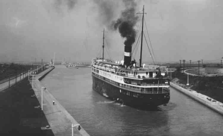 S.S. Noronic in Welland Canal at Lock 7
