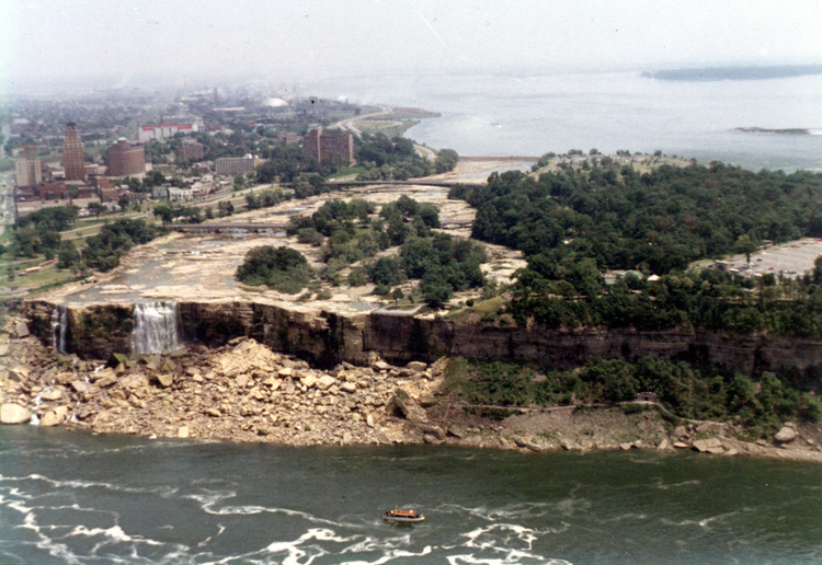 - en-CA From June to November 1969 the American Falls were dewatered. This action cut back the normal flow of 60,000 gallons a second to almost nothing. Most of the diverted water was either sent over the Horseshoe Falls or diverted to the Robert Moses generating plant's upriver intakes. The action enabled Canadian and US power companies and the US Army Corps of Engineers to do on-the-spot inspections and aerial photographs of the river bed's rock formation. This was all part of a plan to reduce erosion to the Falls