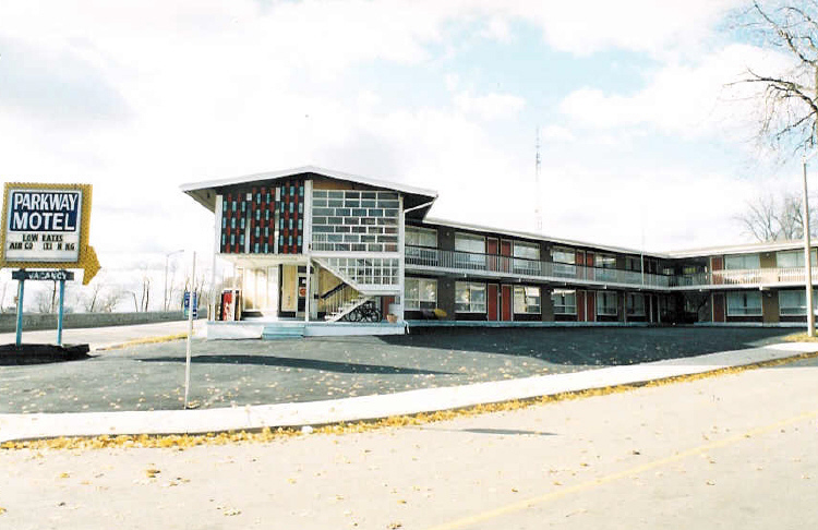 Parkway Motel - Exterior View from the Corner of Park Street & River Road