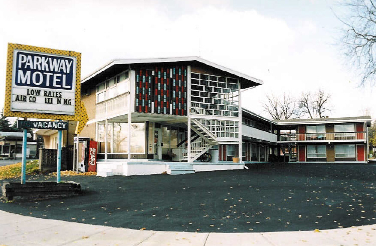 Parkway Motel - Exterior View from the Corner of Park Street & River Road
