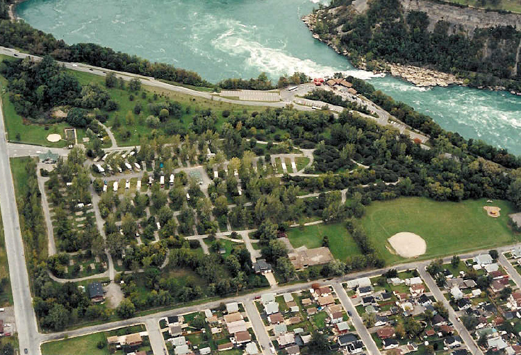 - Aerial View of a Campground Across from Niagara Helicopters