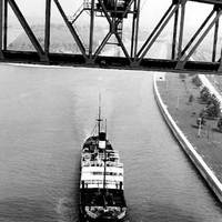 - Aerial of a Ship in the Welland Canal Passing Under a Lift Bridge