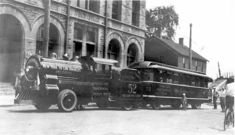 - First " Trackless Train ", in front of the old Post Office, ca 1925