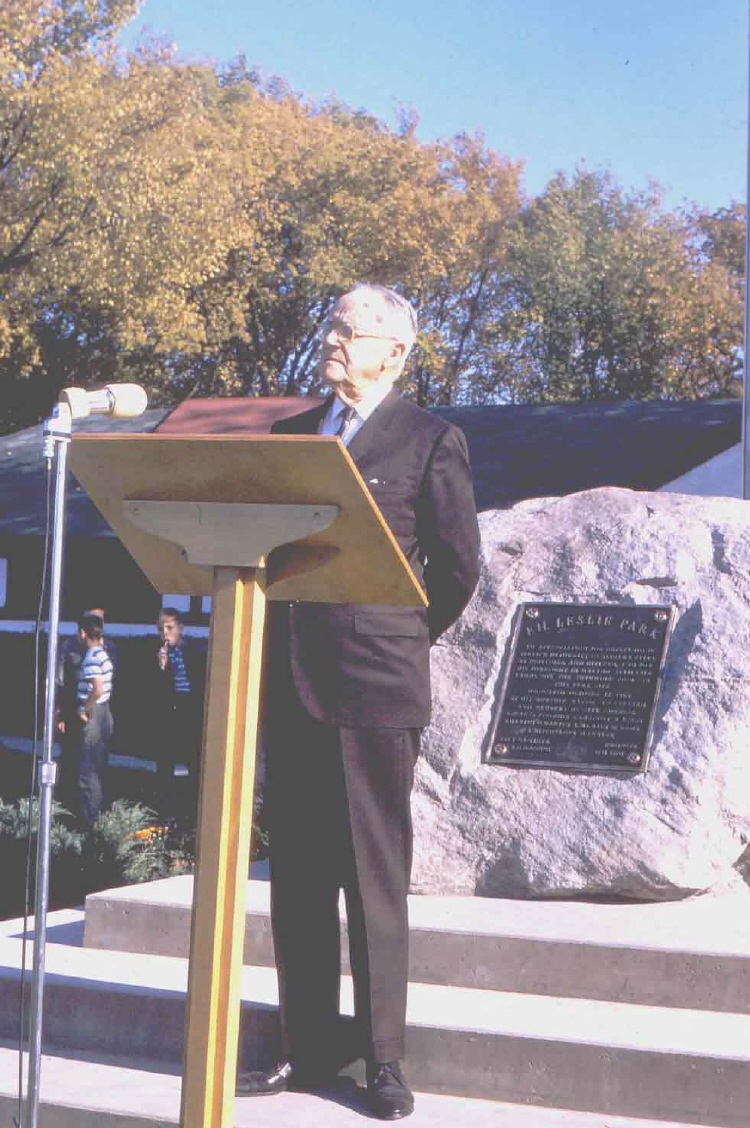 - F. H. Leslie speaks at the dedication of a Park named in his honor