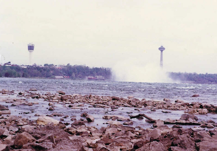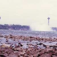 - Mist from the Horseshoe Falls with both the Minolta and the Skylon Towers in the Background