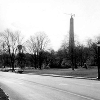 - en-CA Minotla tower can be seen through the tree in the background. Queen Victoria Park is across from the Niagara Parkway