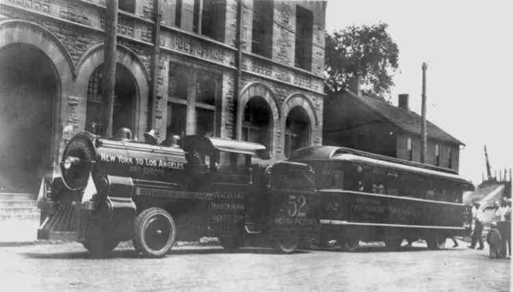 - First " Trackless Train ", in front of the old Post Office, ca 1925