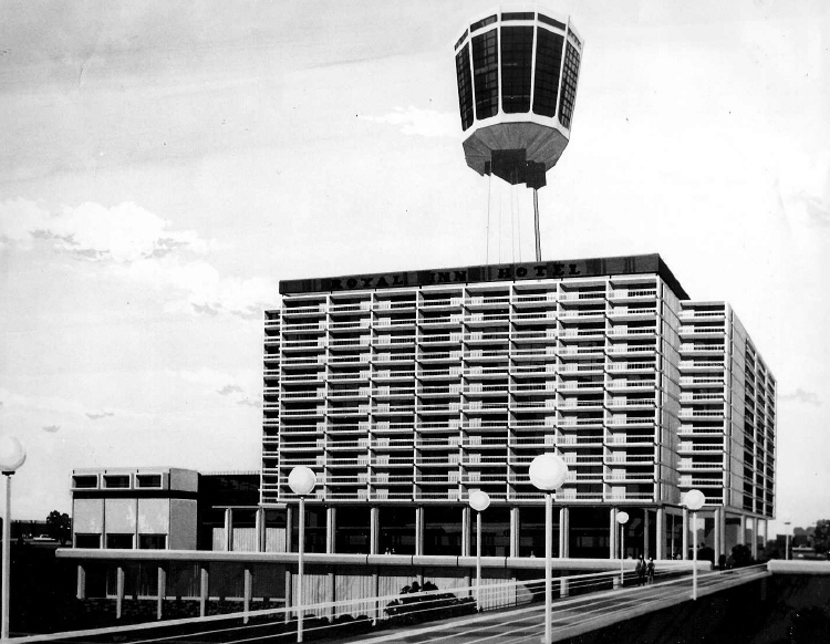 Architect's Rendering of the Royal Inn Hotel with the Panasonic Tower in the Background