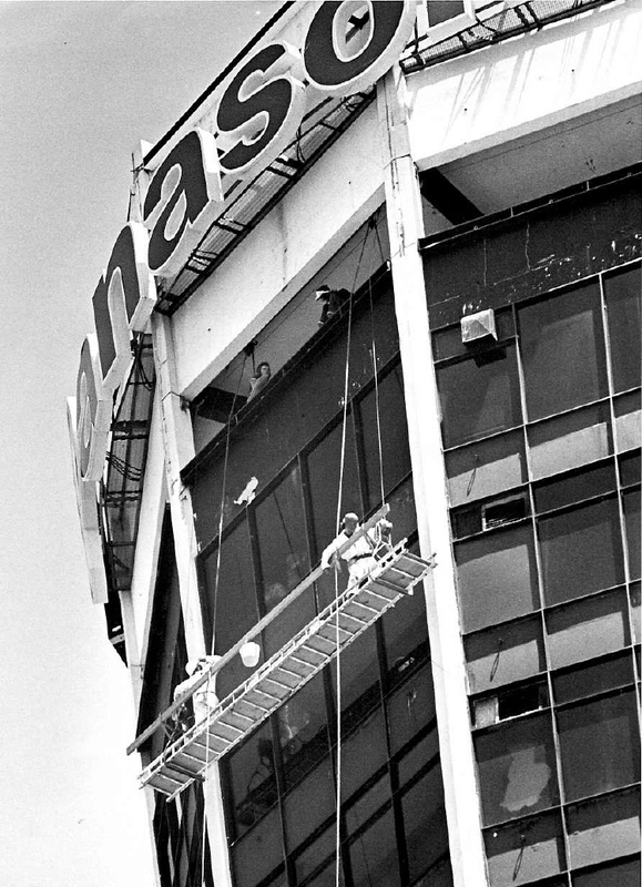 - Panasonic Tower - Workers Underneath the Panasonic Sign