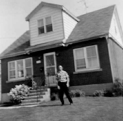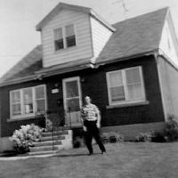 - Church's Lane, 1810, Marcel Theoret standing by a House