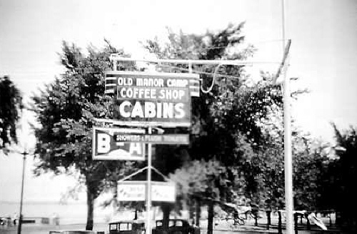 - en-CA Sign Says: Old Manor Camp, Coffee Shop, Cabins