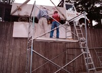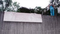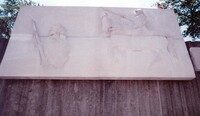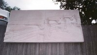 Workers assembling the Lundy's Lane Battlefield Commemorative Wall Workers assembling the four limestone panels which depict scenes from the Battle of Lundy's Lane, in celebration of the City of Niagara Falls Centennial and the 190th Anniversary of the Battle of Lundy's Lane, fought July 25, 1814. Panels created by Campbell Monument Company of Belleville. -