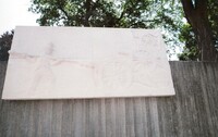 Ceremony for the unveiling of the Lundy's Lane Battlefield Commemorative Wall Mayor Ted Salci and an unidentified guest at the unveiling of the Battle of Lundy's Lane Commemorative wall which depicts scenes from the Battle Of Lundy's Lane. In celebration of the City of Niagara Falls Centennial and the 190th Anniversary of the Battle of Lundy's Lane, fought July 25, 1814, these limestone panels were created to pay tribute to those whose lost their lives in the battle. Panels were created by Campbell Monument Company of Belleville. Erected July 25, 2004 by his Worship Mayor Ted Salci and members of the City of Niagara Falls Municipal Council. -