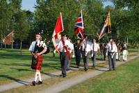 Battle of Chippawa Commemorative Service, 2011 - Contingent marching to Battlefield Members of contingent marching to battlefield being lead by a bagpiper, followed by flag bearers and rest of contingent -