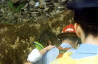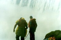 Lori Martin being rescued after she and Steve Trotter went over the Horseshoe Falls in a barrel. On June 18, 1995 Steve Trotter and Lori Martin were the first "coed" team to go over the falls in a barrel. The 12 foot barrel was made from 2 pieces of hot water heater welded together and coated in kevlar. They had an air supply lasting 90 minutes. After going over the Horseshoe Falls, the barrel became lodged in a rock crevice and members of the Niagara Falls Fire Department, along with Parks police had to climb over the guard rail in the tunnels to reach the trapped barrel and secure it with a line to shore. They then opened the hatch and pulled out Martin and Trotter followed. -