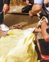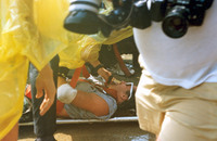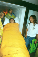 Steven Trotter assisted by emergency workers after he & Lori Martin went over the Falls in a barrel STEVE FIRE POLICE NIAGARA PARKS POLICE -