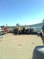Emergency crew rescuing Lori Martin after she & Steven Trotter went over the Falls in a barrel STEVE FIRE POLICE NIAGARA PARKS POLICE -