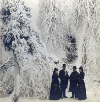 The Bridal party, Wonderland, Niagara Falls, U.S.A. A bridal party poses under frozen trees. -