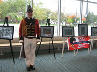 War of 1812 Art Displays at the Scotiabank Convention Centre War of 1812 art displays (1812 Commemorative Fund) by the Niagara Falls Public Library at the Scotiabank Convention Centre for the Niagara Concerts' War of 1812 Celebration Concert. Don Jackson is dressed in period costume as General Drummond. Mount Carmel is visible in the background. -