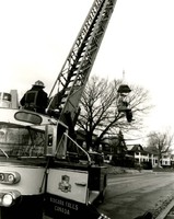 Maple Leaf Village Ferris Wheel being dismantled The ferris wheel at Maple Leaf Village being torn down in the fall/winter of 1992 ; over seventy five percent of the wheel has been removed ; heavy construction crane partially visible bottom left ; man in cherry picker attached to crane (centre) ; Maple Leaf Village logo sill attached to pole at top of ferris wheel ; buildings in background are located on Victoria Avenue ; -