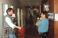 Television crew filming a special on Roger Woodward Film crew at the Greater Niagara General Hospital filming a television special on Roger Woodward. -