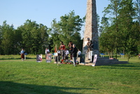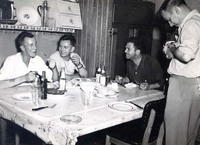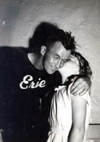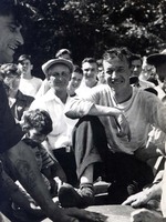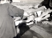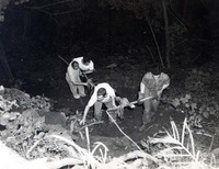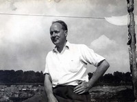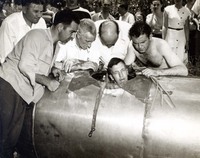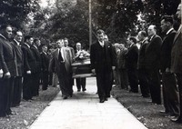 William "Red" Hill Junior's funeral after his death on August 5, 1951. Fourth mourner on the right is Norman Chandler who built the "thing" in which Red died.