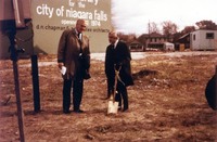 New Library Sod Turning Ceremony on future library site on Victoria Avenue. Left-Right. George H. Hamilton, Chairman Niagara Falls Public Library Board and Mayor George Bukator