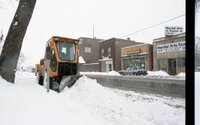Shoveller, now plough with a piece of snow, kids playing at recess. Ian Young cleaning off his car
