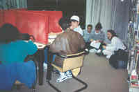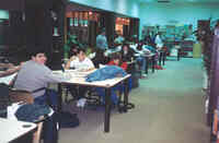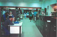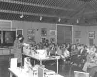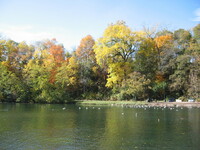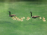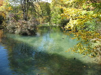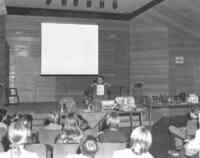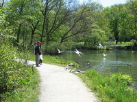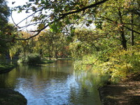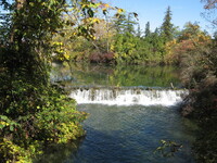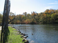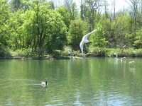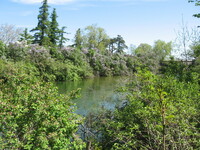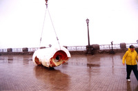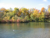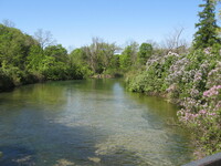 Plaque: Ontario Power Screen House. The walkway crossing the Ontario Power Generating Station forebay replaces a screen house used to stop debris and ice from entering the plant conduits. The outer weir structure forming the plant forebay closes off the entrance to Dufferin Islands around which the river formerly flowed at depths of two metres.