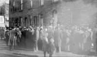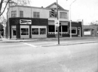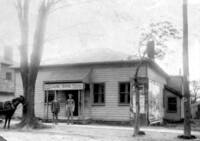 Mr. Collett, old fire hall on the left; A.H. Collett's fireproof storage building was located at 7 Market Square in Niagara Falls - Now part of the City Hall Complex. Mr. Collett was a furniture mover-household removals and piano hoisting. He was also an auctioneer. His moving company was called Power City Transport