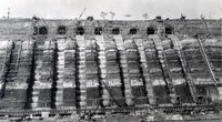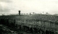 Lake Ontario as seen from the Waterfront Trail at Geneva Street, with the Dalhousie Yacht Club in the background with the inlet blocked for the winter.