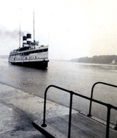 Lake Ontario as seen from the Waterfront Trail at Geneva Street, with the Dalhousie Yacht Club and Port Dalhousie inner range lightouse in the background.