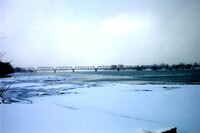 Streetcar & Station on right ; the four large smokestacks in the extreme background belong to the Aluminum Company of America , formerly known as the Pittsburg Reduction Company ;